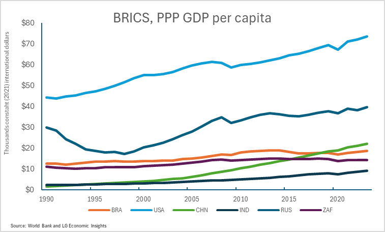 - The BRICS were originally seen as the future of the global economy. But some have fallen backwards and others have stagnated. A couple are proceeding towards a wealthier economy. The lesson is that in spite of the forces within an economy driving towards growth, growth is not guaranteed.