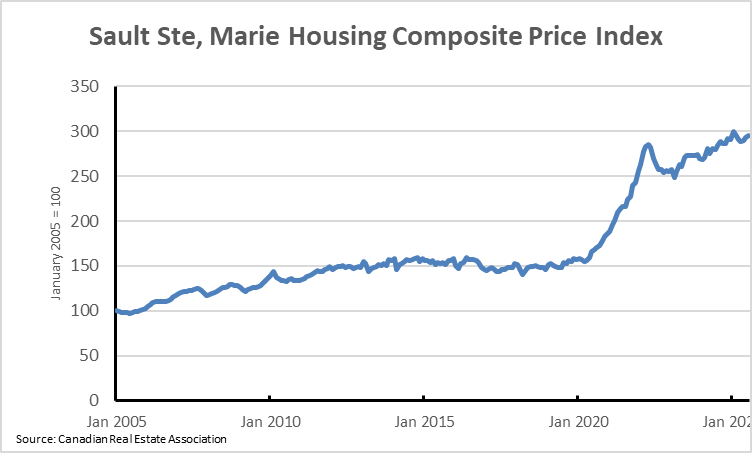Average home prices in Sault Ste. Marie have risen sharply, from $190,000 in 2016 to over $300,000 by 2024. This increase reflects population growth, new investment, and renewed economic confidence. While affordability remains better than in southern Ontario, upward pressure on prices poses challenges for younger households and in-migrants.